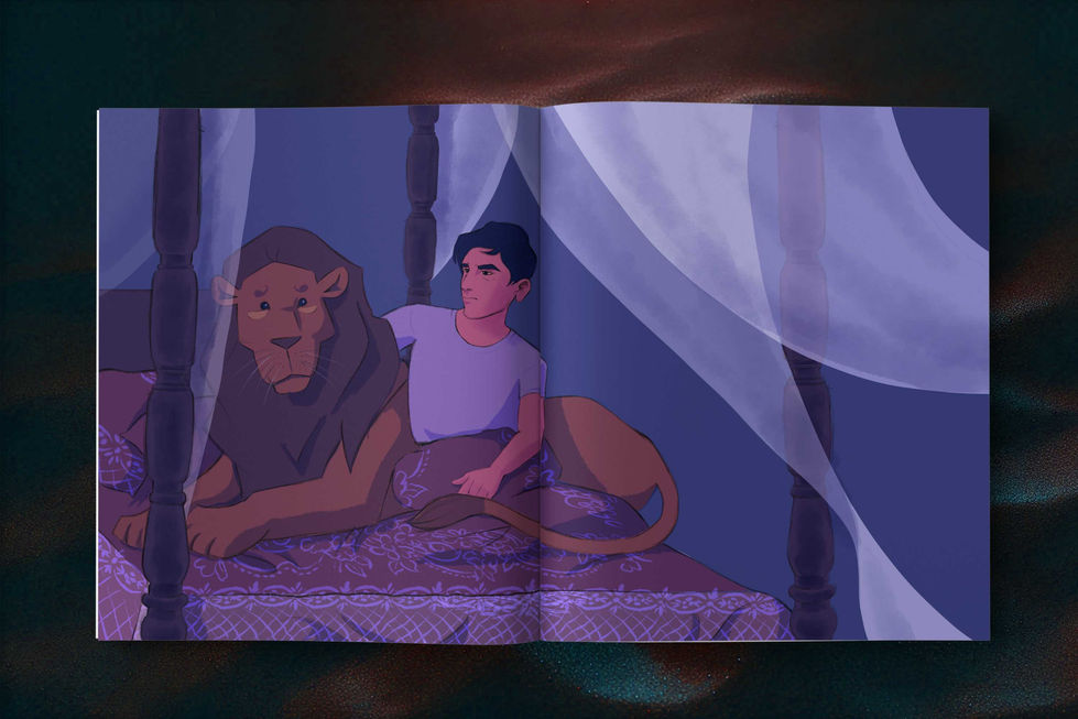 مجموعة من رسومات كتاب "صديقي الأسد" من سلسلة "عالمي الصغير" لصاحب السمو الشيخ محمد بن راشد آل مكتوم والمقتبسة من كتاب سموه "قصتي".